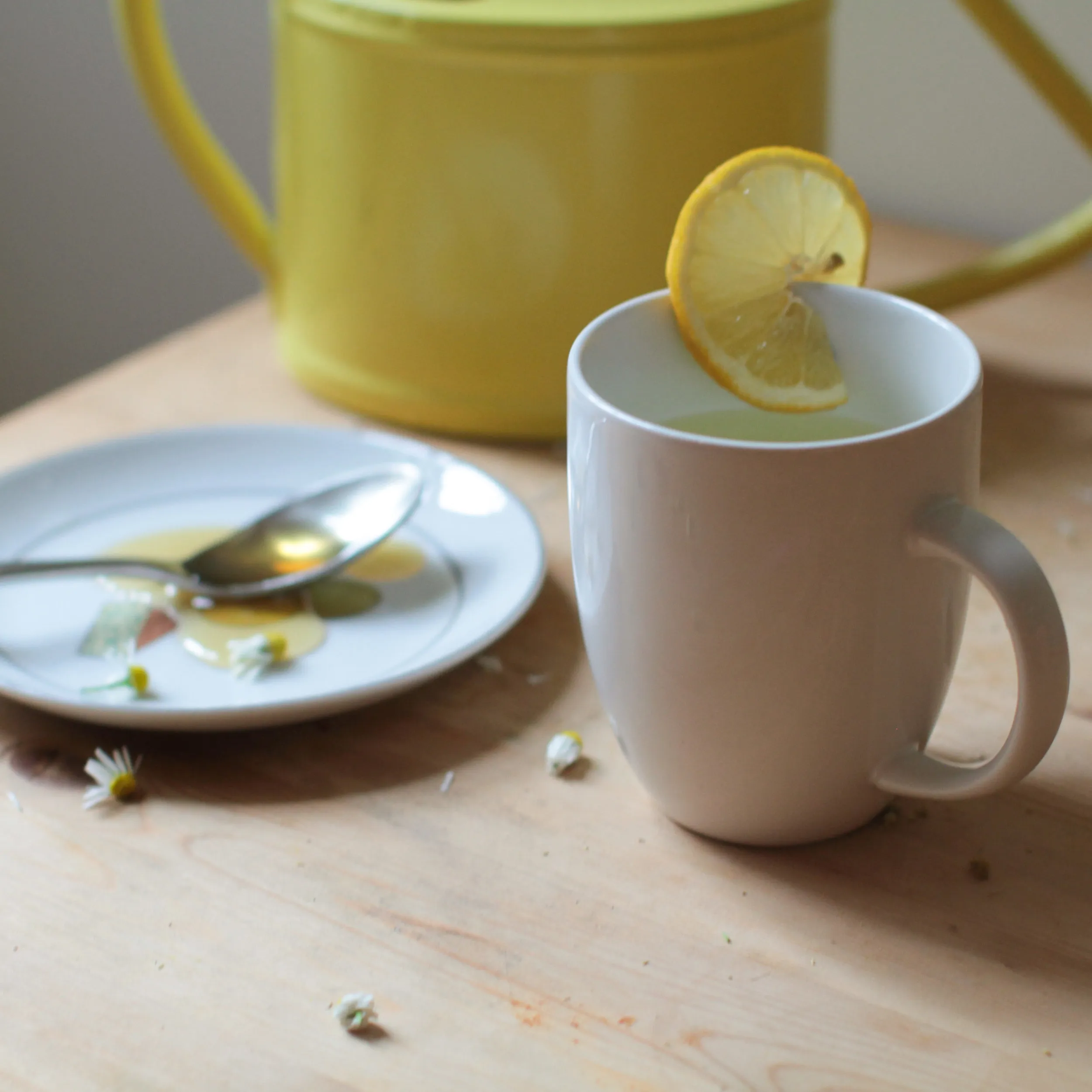 Honey is delicious with chamomile. Some people enjoy lemon as well, although I think this particular tea is better without.